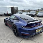 We are delighted to offer this 2021 Porsche 911 , 992 Turbo S for sale. This is a remarkable example, boasting a single owner and an exceptionally low mileage of just 10,528 miles for its age, complemented by a full service history, four wheel drive and powered by a potent 3.7 litre Twin turbo petrol flat Six, promising exhilarating performance. It comes equipped with a host of desirable features, including Adaptive Cruise Control, an Electric Glass Slide and Tilt Sunroof, and Tinted LED Main Headlights with Matrix Beam including Porsche Dynamic Light System Plus. A bespoke sticker set adds a unique touch, while Privacy Glass enhances the sophisticated aesthetic. The performance of this Porsche 911 is truly outstanding, with a rapid 0-62mph acceleration time of just 2.7 seconds, demonstrating its superior capabilities compared to other vehicles in its class. This exceptional speed is a testament to the engineering prowess of the Turbo S variant. Furthermore, the vehicle will have a full service before collection, ensuring peace of mind for its next owner.